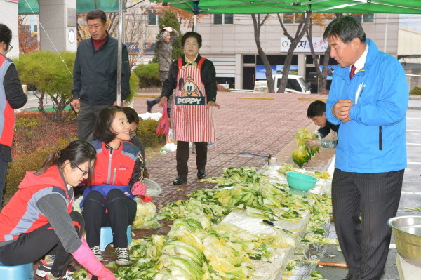 최근 경기 동두천시 상패동 새마을 남·녀 지도자 협의회가 지역내 사회적배려 대상자 120여가구를 대상으로 ‘사랑의 김장나누기’ 행사를 열고 김장을 하기 위해 절인 배추를 정리하고 있다.(사진제공=동두천시청)
