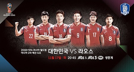 최종예선 직행 티켓을 거머쥐기 위한 대한민국의 굳히기 한 방 ‘2018 러시아 월드컵’ 아시아지역 2차 예선 G조 라오스와의 6차전은 JTBC와 JTBC3 FOX Sports에서 17일 오후 8시 45분에 방송되며 중계는 박찬하 해설위원과 임경진 캐스터가 맡는다.