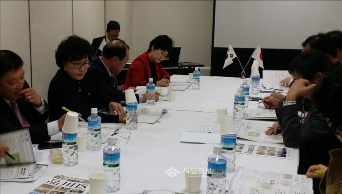 최근 주민자치 운영 벤치마킹을 위해 일본 도쿄 시나가와구를 방문한 서울 구로구 주민자치위원장협의회가 자치회 운영, 자발적인 쓰레기 감량 방안 등 주민자치 운영에 대한 설명을 듣고 있다.(사진제공=구로구청)