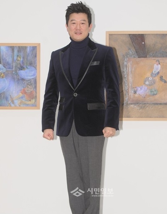 이 날 박상민은 그레이컬러 팬츠에 벨벳 블랙상의를 입고 카메라를 바라보고 있다.