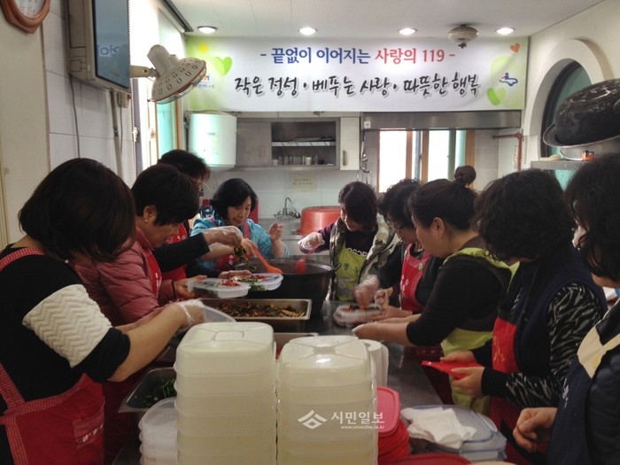 경기 수원시 권선구 평동 통장협의회 회원들은 지난 17일 지역내 홀몸노인과 저소득층 40여가구에 사랑의 밑반찬을 만들어 전달했다. 사진은 이날 행사에 참석한 관계자들이 밑반찬을 만드는 모습.(사진제공=권선구청)