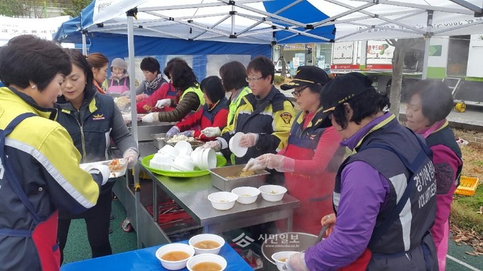 경기 안성소방서는 19일 내혜홀 광장에서 힘들고 어려운 이웃에게 나눔의 활동으로 '119사랑의 밥차'를 운영했다. 사진은 행사에 참석한 관계자들이 밥차를 준비하는 모습.(사진제공=안성소방서)