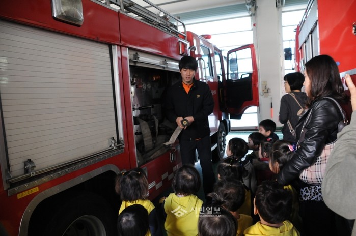 서울 서대문소방서는 지난 17일 소방서에서 예랑어린이집과 삼성한울어린이집 어린이들을 대상으로 '어린이 안전교육'을 실시했다. 사진은 소방서 관계자가 교육을 진행하는 모습.(사진제공=서대문소방서)