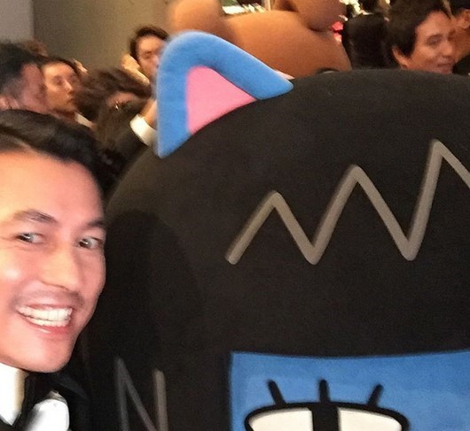 공개된 사진은 이날 개막한 부산국제영화제에서 찍은 사진으로, 그는 카카오 캐릭터 인형 옆에 서서 환한 미소로 카메라를 응시하고 있다.