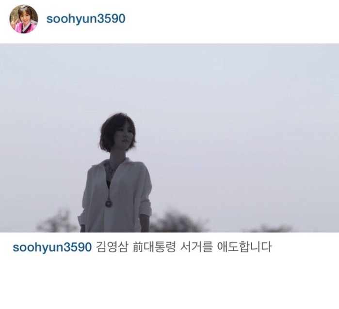 윤수현은 22일 오후 자신의 인스타그램에 '김영삼 전 대통령 서거를 애도합니다"라는 글과 사진 한 장을 게재했다.