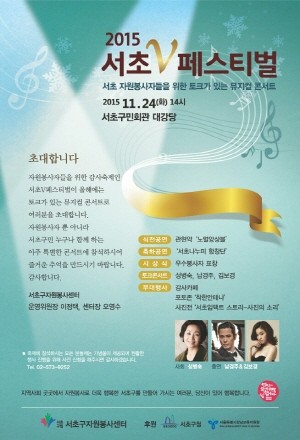 이번 행사는 서초구자원봉사센터 ‘나즐리’(나눔이 즐거운 서초리더) 봉사단에서 재능나눔을 실천하고 있는 배우 성병숙, 뮤지컬 배우 남경주와 김보경이 함께하는 토크가 있는 뮤지컬 콘서트로 진행된다.