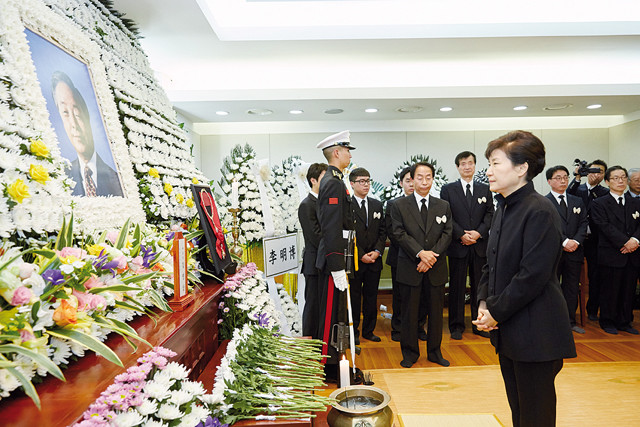 박근혜 대통령이 23일 서울 종로구 서울대학교병원 장례식장에 마련된 故 김영삼 전 대통령의 빈소를 찾아 조문하고 있다.