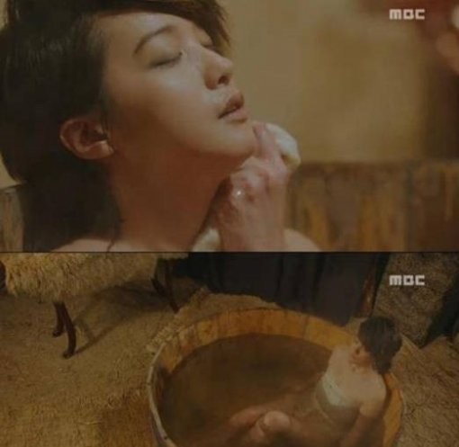 유인영은 당시 얇은 속옷 한장을 걸친 차림으로 목욕통에 앉아 몸을 씻고있다. 유인영의 매끈한 몸매와 볼륨감 넘치는 가슴라인이 어우러져 한층 섹시한 분위기를 자아내고 있다.