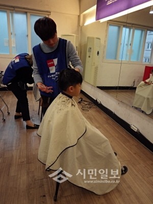 서울 송파구 드림스타트는 지난 23일 사틴헤어살롱과 무료 이·미용 서비스 후원협약을 체결하고, 드림스타트 아동들을 대상으로 무료 이·미용 서비스를 실시했다. 사진은 이·미용 서비스가 진행 중인 모습.(사진제공=송파구청)