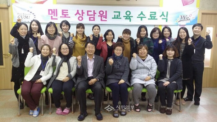 경북 구미교육지원청 Wee센터는 26일 센터 교육실에서 '제5기 Sweet 멘토상담원 교육 수료식'을 실시했다. 사진은 수료식에 참석한 관계자들이 기념촬영을 한 모습.(사진제공=구미교육지원청)