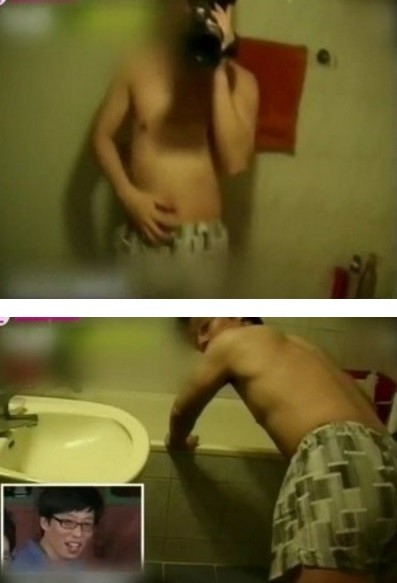 유재석은 당시 방송에서 상의를 탈의하고 화장실에서 자신의 몸을 찍고있다. 유재석의 다소 민망하게 드러나는 신체부위가 보는 이들의 웃음을 자아내고 있다.