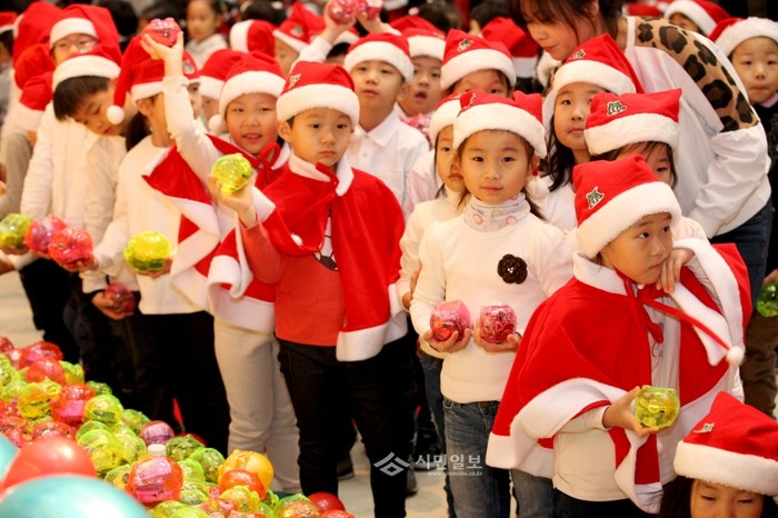 서울 성동구는 지난 27일 성동구청 3층 대강당에서 성동구어린이집연합회 주관으로 '사랑의 저금통 모으기' 행사를 개최했다. 사진은 행사에 참가한 어린이들이 저금통을 들고 있는 모습.(사진제공=성동구청)