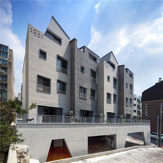 수직구조로 계획하여 각 세대가 4개층으로 구성되며, 모든 세대에 옥상 공간과 1·4층에 테라스를 제공했다. 또한, 출입문에 네 가지 각기 다른 강렬한 색상을 적용하여 건물이 다채로운 이미지를 갖도록 했다.