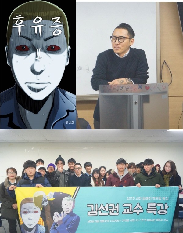 웹툰과 교수 김선권 웹툰작가는 특강을 통해서 웹툰 및 웹툰작가의 필수요건과 웹툰작가가 되기 위한 자신만의 노하우를 학생들에게 전수 했으며 김선권 교수가 지도하는 한국예술원 웹툰과는 웹툰의 기초부터 완벽한 웹툰을 창작 할수 있는 실무 위주의 교육을 진행하여 학생들이 웹툰작가 데뷔 할 수 있도록 돕고 있다.