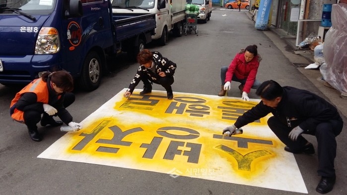 은평소방서, '소방차 통행로' 문구 노면표시 작업