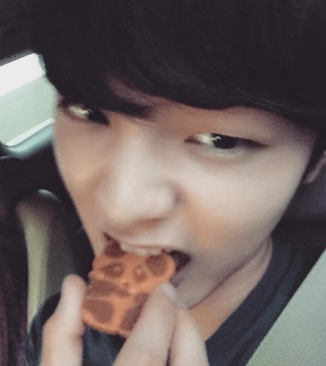김민재는 공개된 사진 속에서 캐릭터 모양의 쿠키르 입에 물고 장난기 넘치는 표정을 짓고있다.