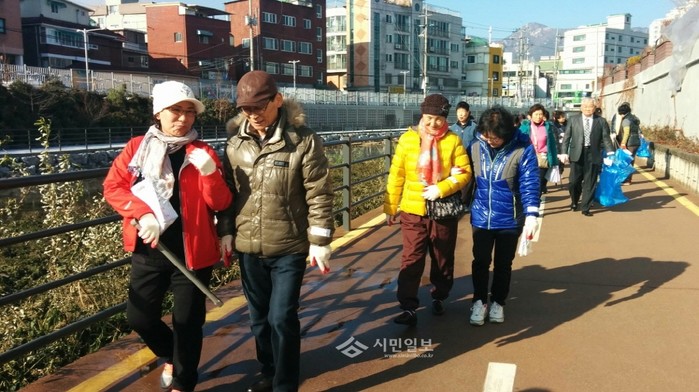 도봉구 쌍문3동 주민센터가 최근 생명존중 사업의 일환으로 '생명존중, 나를 힐링하는 우이가람길 걷기' 행사를 개최한 가운데 행사에 참여한 60여명이 우이천변을 걸으며 쓰레기를 줍고, 자살예방 홍보활동을 펼치고 있다. (사진제공=도봉구청)