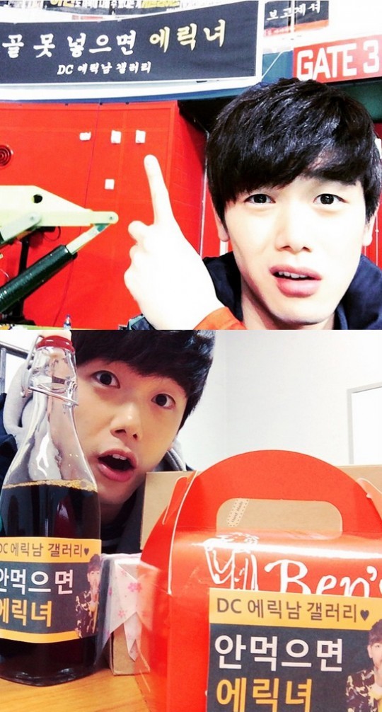 공개된 사진 속 에릭남은 팬들의 현수막과 도시락 선물을 인증하고 있다. 특히 팬들이 제작한 현수막에는 ‘골 못 넣으면 에릭녀’라 적혀있고 조공을 한 음식에는 ‘안 먹으면 에릭녀’라고 적혀있어 웃음을 자아낸다.