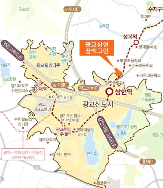신분당선은 1단계 6개 역사(강남-양재-양재시민의숲-청계산입구-판교-정자)가 2011년 9월 개통되었으며, 2단계 7개 역사(미금역-동천역-수지구청역-성복역-상현역-광교중앙역-광교역)가 내년 2016년 2월 개통 예정으로 연장선이 들어서면서 인근 수혜단지에 대한 관심도 커지고 있다.