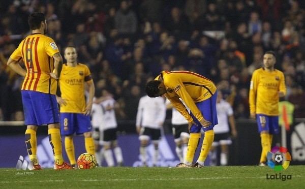 6일(한국시간) 스페인 발렌시아 캄프 데 메스타야에서 열린 2015-2016 라리가 14라운드 FC바르셀로나와 발렌시아의 경기는 1대 1로 승부를 가리지 못한채 끝났다. 바르셀로나는 승점 1점을 더하며 프리메라리가 선두를 수성했다.