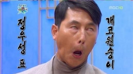 당시 출연자인 개그맨 유세윤은 '개코원숭이 모사'를 추천했지만 정우성은 "그냥 생긴대로 살겠다"라며 거절했다.