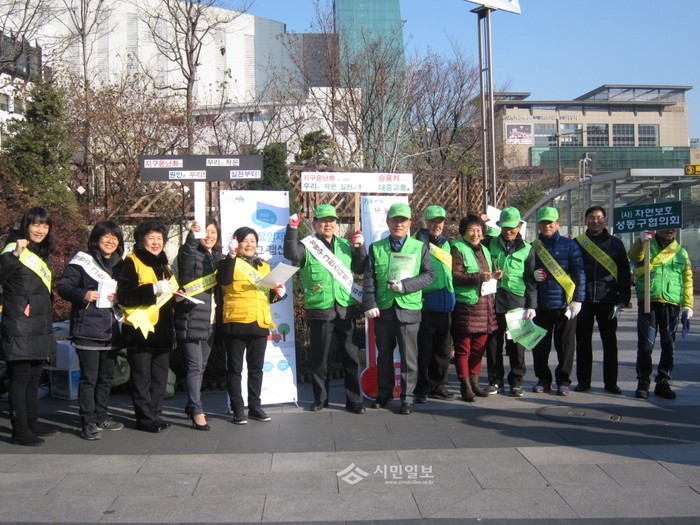 서울 성동구는 지난 8일 왕십리로터리에서 '기후변화대응을 위한 성동구민 실천약속' 캠페인을 진행했다. 사진은 지역내 환경단체인 (사)자연보호성동구협의회, 성동구주부환경연합회 회원 및 관계공무원 등이 캠페인을 하는 모습.(사진제공=성동구청)