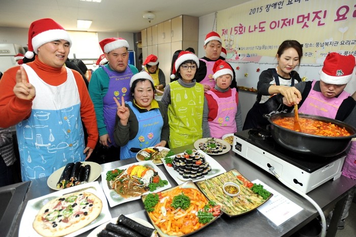 지난 8일 오후 서울 송파구 풍납종합사회복지관에서 제15회 장애인요리대회 '나도 이제 멋진 요리사' 행사가 열린 가운데 참가자들이 직접 만든 음식을 선보이고 있다.(사진제공=송파구청)