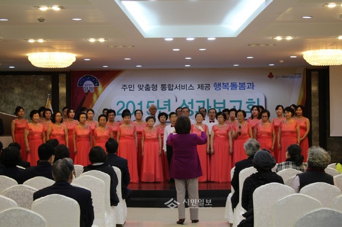 경기 양평군은 지난 6일 여성회관 4층 다목적실에서 '행복돌봄 성과보고회 및 행복나눔한마당'을 개최했다. 사진은 이날 행사에서 홀몸노인과 행복돌봄과 직원으로 구성된 행복바이러스합창단이 공연을 하는 모습.(사진제공=양평군청)