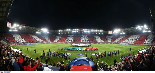10일 오전(한국시간) 그리스 카라이스카키스 스타디움에서 2015-2016 시즌 챔피언스리그 F조 조별예선 6차전 아스날과 올림피아코스의 경기가 진행 중이다.
