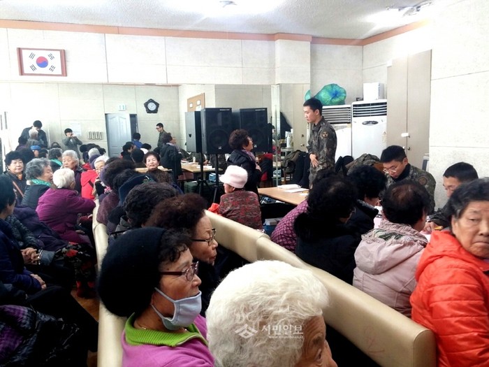 경기 양주시 양주1동 6공병여단 103대대는 최근 복지회관에서 군의관 1명을 비롯한 부대원 10명이 지역내 노인 및 취약계층을 대상으로 '근육 및 관절 통증 치료 의료봉사'를 진행했다.(사진제공=양주시청)