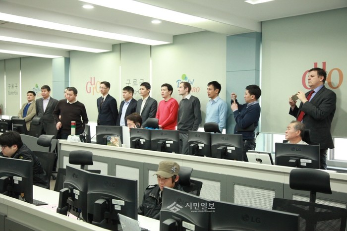 키르키즈 공화국 국가등록청 대표단이 최근 전자정부 벤치마킹을 위해 구로구를 내방했다. 사진은 키르키즈 공화국 관계자들이 'U-구로통합관제센터'를 견학하는 모습.(사진제공=구로구청)