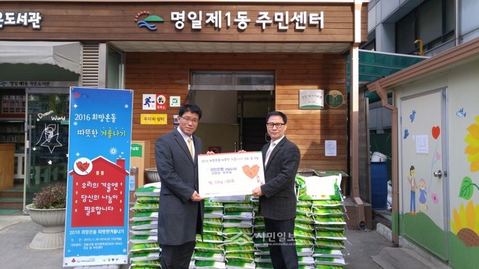 강동구 KB국민은행 명일동지점, 주민센터에 쌀 기탁