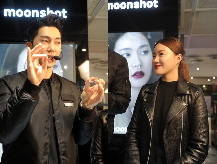 이날 행사에는 문샷의 새로운 메이크업 제품들도 함께 소개되어 이목을 집중시켰다. 피부진정 효과가 있는 수분 미스트, 자외선 차단과 프라이머 기능이 함유된 멀티 베이스, 동안느낌을 재현해주는 푸른빛의 청광 베이스, 번짐을 최소화한 아이라이너 등 다른 코스메틱 브랜드에서 찾아볼 수 없는 유니크한 제품들이 눈에 뛰었다.