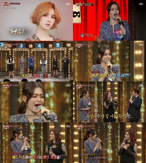 2라운드에서 탈락한 모니카는 자신의 정체를 공개한 다음 자신이 5개 국어 가능자라고 밝히며 거미의 '어른아이'를 독일어로 열창해 시청자들의 놀라움을 자아냈다.