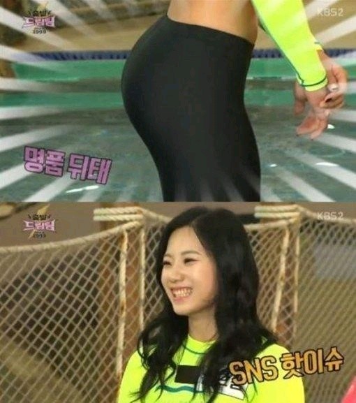 MC 이창명이 심으뜸에게 "히프가 예쁘다"라며 뒤태 공개를 요청하자 천이슬과 심으뜸은 각자 가장 자신있는 포즈를 취했다.