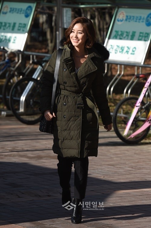 김성령은 화이트 브이넥, 블랙 컬러의 팬츠와 부티 여기에 올리브색 컬러의 버버리 패딩으로 편안하면서도 고급스러운 하객 패션을 선보였다.