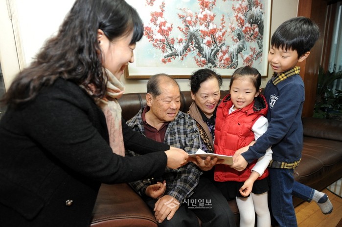 15일 2016년도 취학아동통지서 인편 송부가 시작된 가운데 서울 송파구 잠실동의 한 가정에서 초등학교 취학통지서를 받은 가족들이 기뻐하고 있다.(사진제공=송파구청)