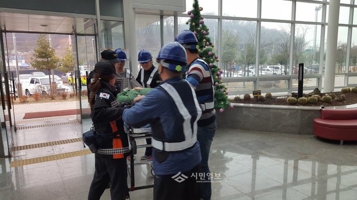 경기 양주시시설관리공단은 최근 다중이용시설인 에코스포츠센터에서 양주소방서, 승강기유지보수업체와 합동으로 '2015년 승강기 갇힘사고 승객 구조훈련'을 실시했다. 사진은 훈련이 진행 중인 모습.(사진제공=양주시청)