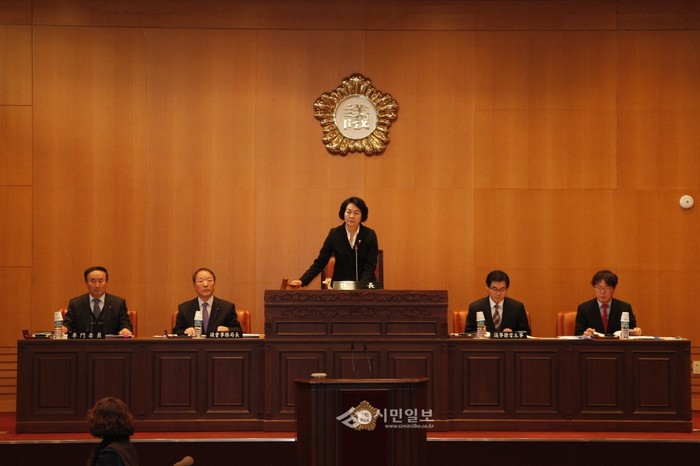 | ▲ 박삼례 의장이 제193회 제2차 정례회 폐회 선언을 하고 있다. | ||