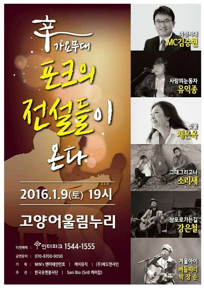 한국유엔봉사단, SnB 케미컬, 지엔엠파트너스 공동 주관으로 진행되며 내외경제TV, 내외뉴스통신이 후원하는 이번 공연에 대한 자세한 사항은 전화(070-8700-9050)로 문의하면 된다