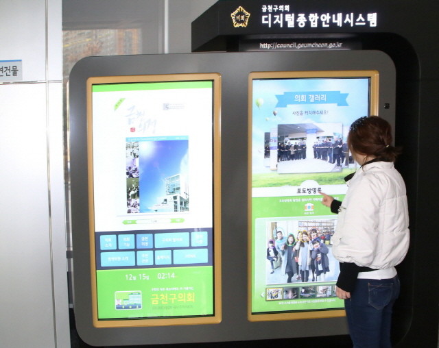디지털 종합 안내 시스템은 의회 관련 정보외에도 금천구 관광 안내, 포토 방명록 등 유익한 콘텐츠도 갖추고 있어 의회를 방문하는 주민들에게 색다른 즐거움을 선사할 것으로 기대된다.