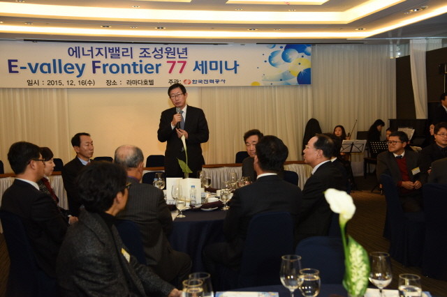 | ▲ 한전 조환익 사장이 에너지밸리 프론티어 77 세미나에서 인사말을 하고 있다. | ||