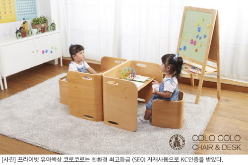 한편 ‘코로코로'는 일본서 건너온 글로벌유아책상의자 브랜드로, 최고급 유럽산 너도밤나무와 북미산 호두나무 등 친환경 자재를 사용해 포름알데히드 방사량을 최소화시킨 SE0등급을 받은 바 있다.