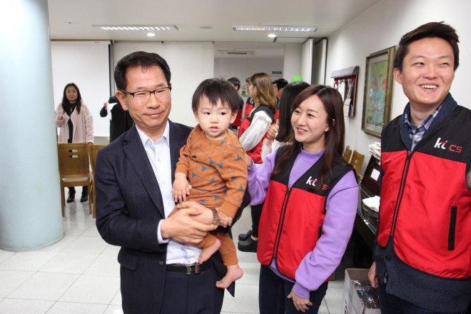 KT CS(대표 유태열, www.ktcs.co.kr)가 최근 대전 두리모 보호시설 ‘아침뜰’에서 연말맞이 사회공헌활동을 진행했다. 이날 KT CS 유태열 대표(왼쪽)는 두리모 보호시설 아침뜰에서 연말을 맞아 두리모들과 함께 크리스마스 트리를 장식하고, 선물을 전달했다.