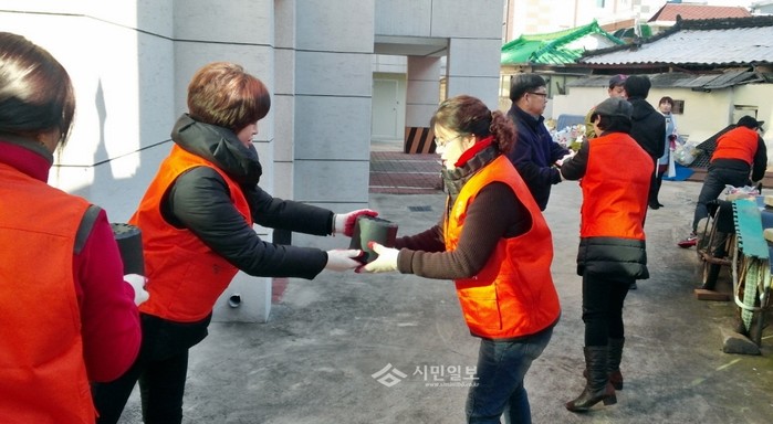 경북 구미시 상모사곡동에서는 최근 숭선로타리클럽 회원 10여명이 참여해 지역내 저소득층의 5가구에 연탄 2000장을 지원하는 '연탄나눔 행사'를 펼쳤다. 사진은 행사에 참석한 관계자들이 연탄을 나르는 모습.(사진제공=구미시청)