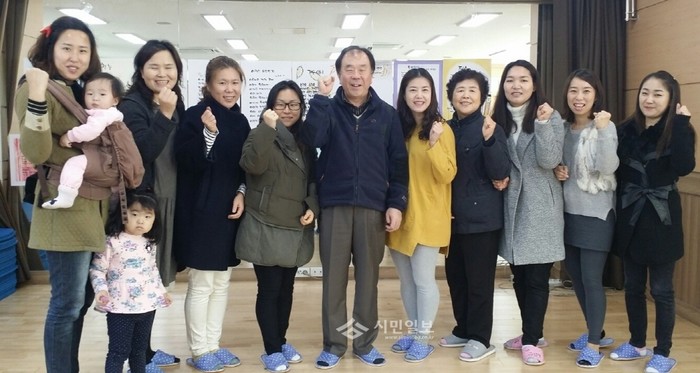경북 구미시 비산동에서는 최근 주민센터 3층 강당에서 수강생들이 참석한 가운데 2015년 하반기 맞춤형 교육 프로그램 ‘POP교실’ 종강식을 진행했다. 사진은 행사에 참석한 관계자들이 기념촬영을 하는 모습.(사진제공=구미시청)