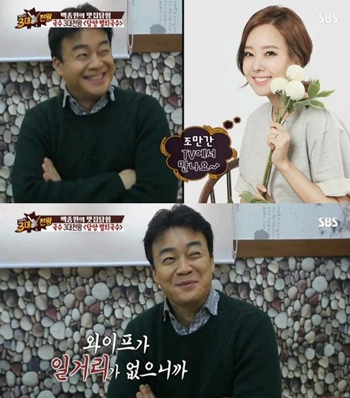 당시 방송에서 백종원은 소유진이 직접 짜준 스웨터를 자랑하며 "요즘 와이프가 일거리가 없다"며 "몸조리도 다했고 일자리를 찾는다"고 말해 웃음을 자아냈다.