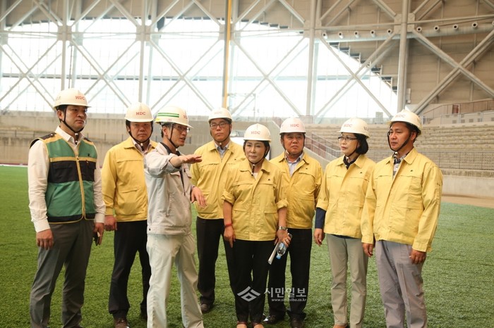 | ▲ 도시건설위원회가 제247회 정례회 행정감사 기간 중 현장활동으로 고척동 돔구장을 찾아 준공을 앞두고 있는 '고척돔야구장'의 교통대책과 인접 학교에 대한 소음·환경문제에 대해 관계자들의 설명을 듣고 있다. | ||