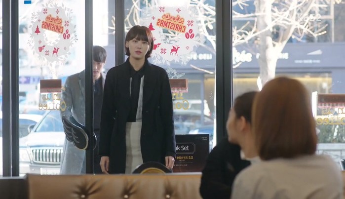 그는 지난 16일 11회 방송에서 100% 실크로 스트립 웨이브가 가미된 블라우스에 화이트 H라인 스커트를 매치하여 깔끔한 스타일링을 연출했다. 또 실버와 블랙의 콤비가 잘 어울러지는 기본 블랙 코트를 걸쳐 한 층 세련된 오피스룩을 선보였다.