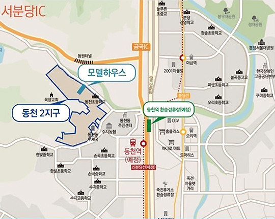 ‘동천자이’는 신분당선 연장(동천역) 구간이 예정되어 있어 동천역을 이용하면 수지구 노선 3개 역(미금역, 정자역, 판교역)과 연결되어 분당-판교-강남을 환승 없이 20분대로 도달할 수 있다.
